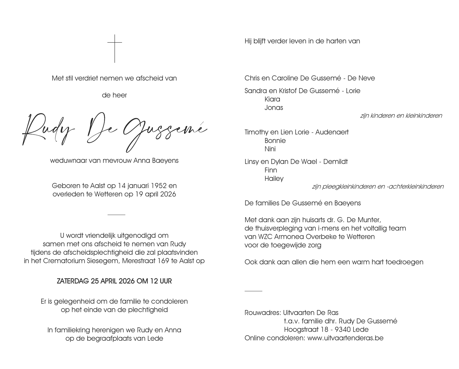 Overlijdensbericht van Meneer Rudy De Gussemé