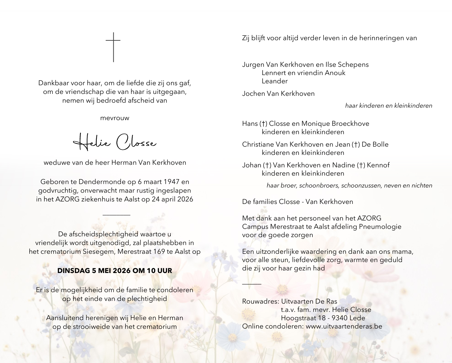 Overleden te Aalst (9300) op vrijdag 24 april 2026 op 79-jarige leeftijd