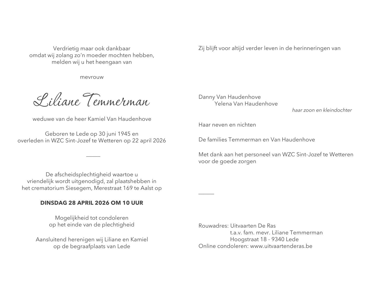 Crematorium Siesegem te Aalst op dinsdag 28 april om 10 u