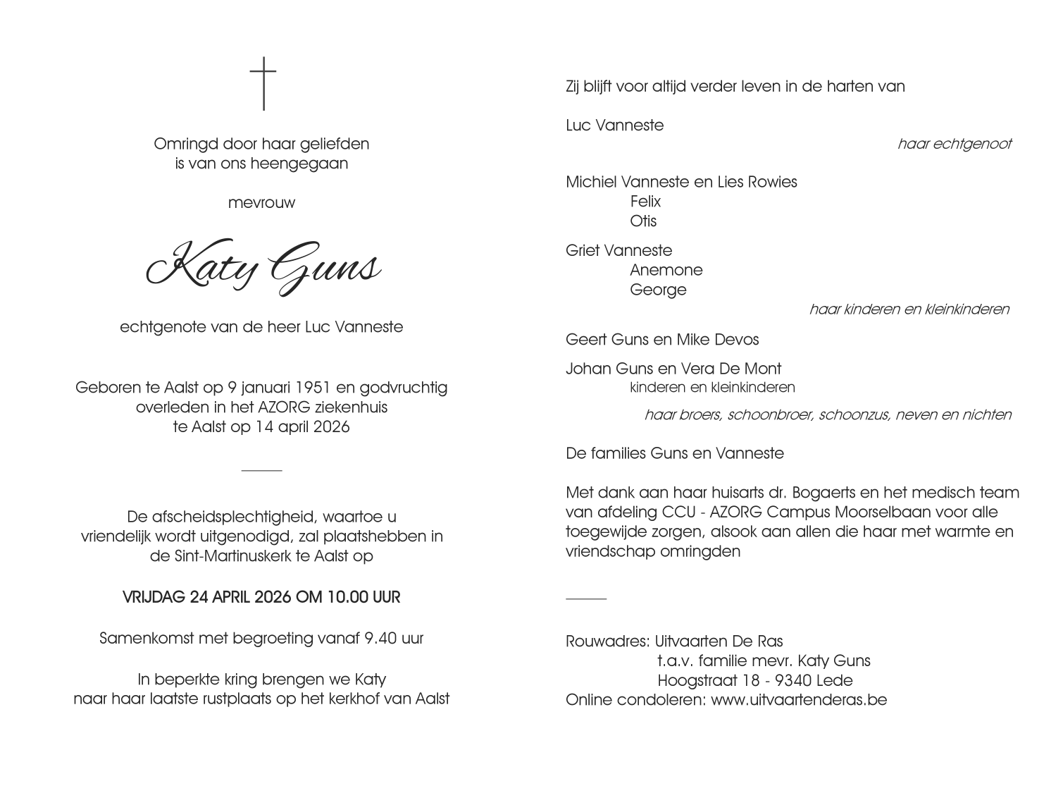 Overleden te Aalst (9300) op dinsdag 14 april 2026 op 75-jarige leeftijd