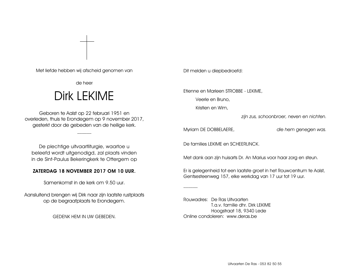 Overleden te Erondegem (9420) op donderdag 9 november 2017 op 66-jarige leeftijd