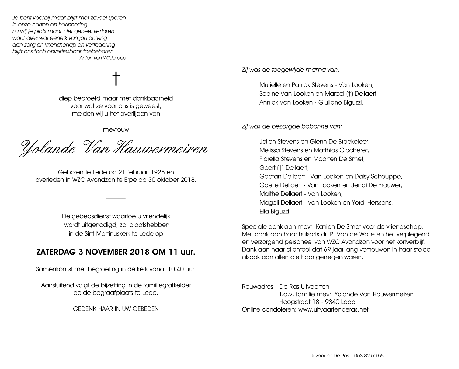 Overleden te Erpe (9420) op dinsdag 30 oktober 2018 op 90-jarige leeftijd