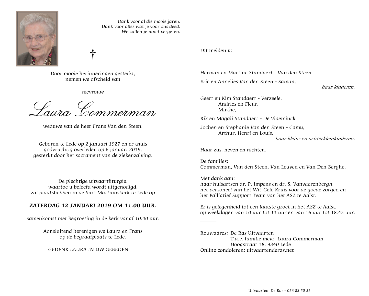 Overleden te Lede (9340) op zondag 6 januari 2019 op 92-jarige leeftijd