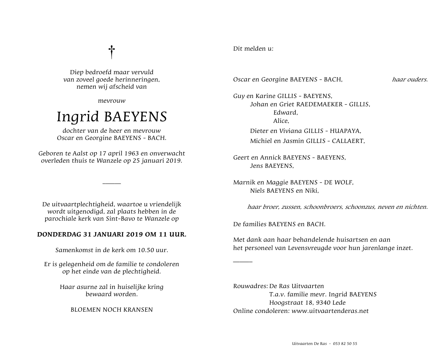 Overleden te Wanzele (9340) op vrijdag 25 januari 2019 op 55-jarige leeftijd