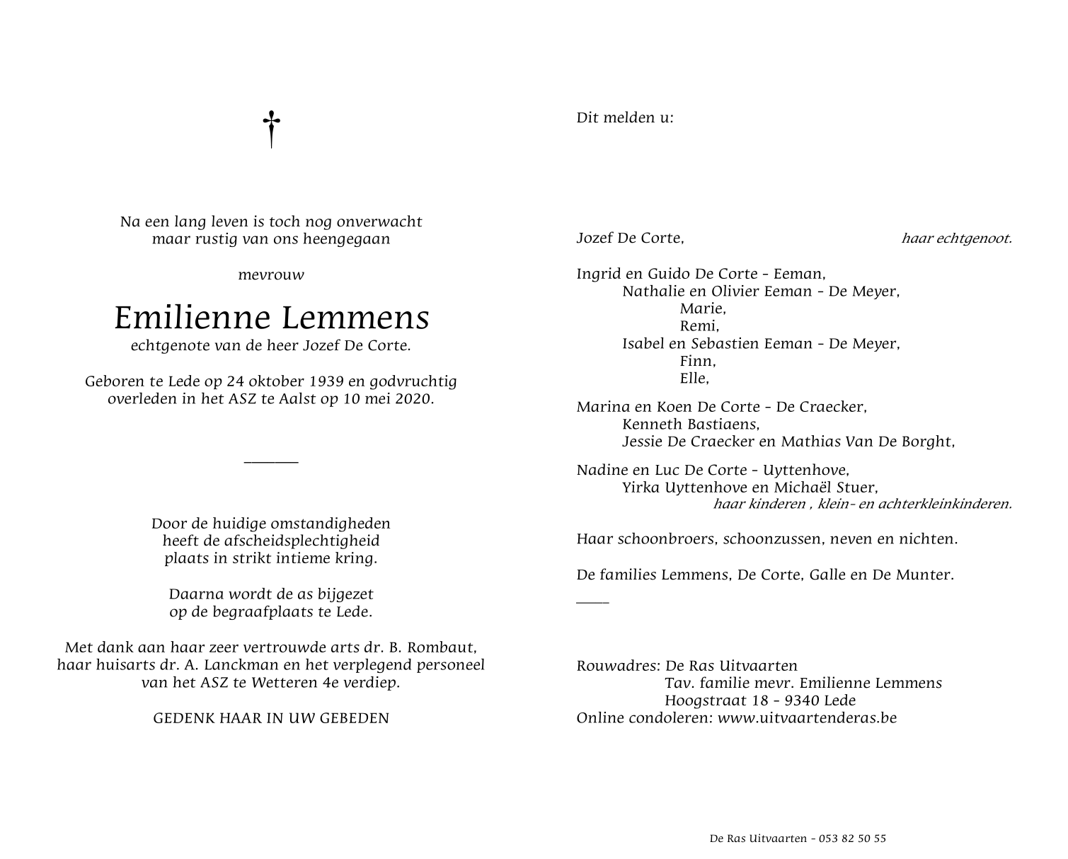 Overleden te Aalst (9300) op zondag 10 mei 2020 op 80-jarige leeftijd