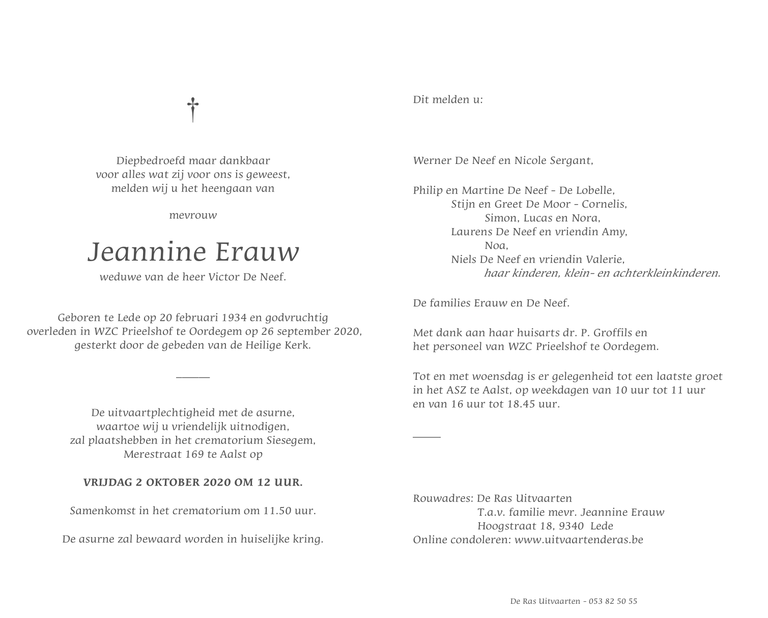 Overleden te Lede (9340) op zaterdag 26 september 2020 op 86-jarige leeftijd