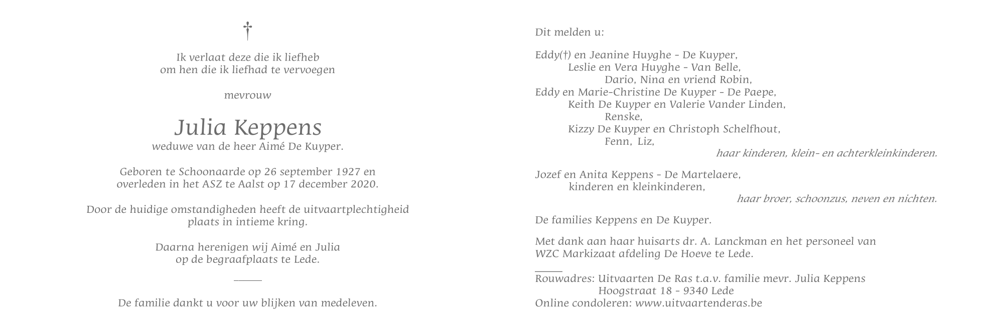 Overleden te Aalst (9300) op donderdag 17 december 2020 op 93-jarige leeftijd