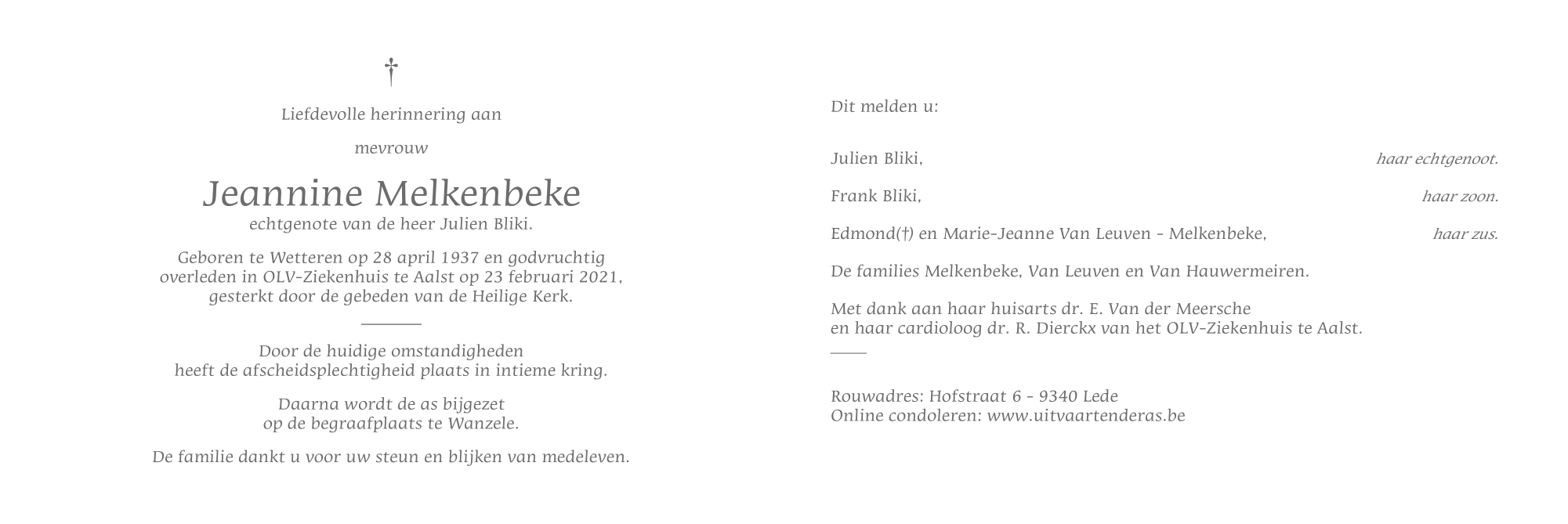 Overleden te Aalst (9300) op dinsdag 23 februari 2021 op 83-jarige leeftijd