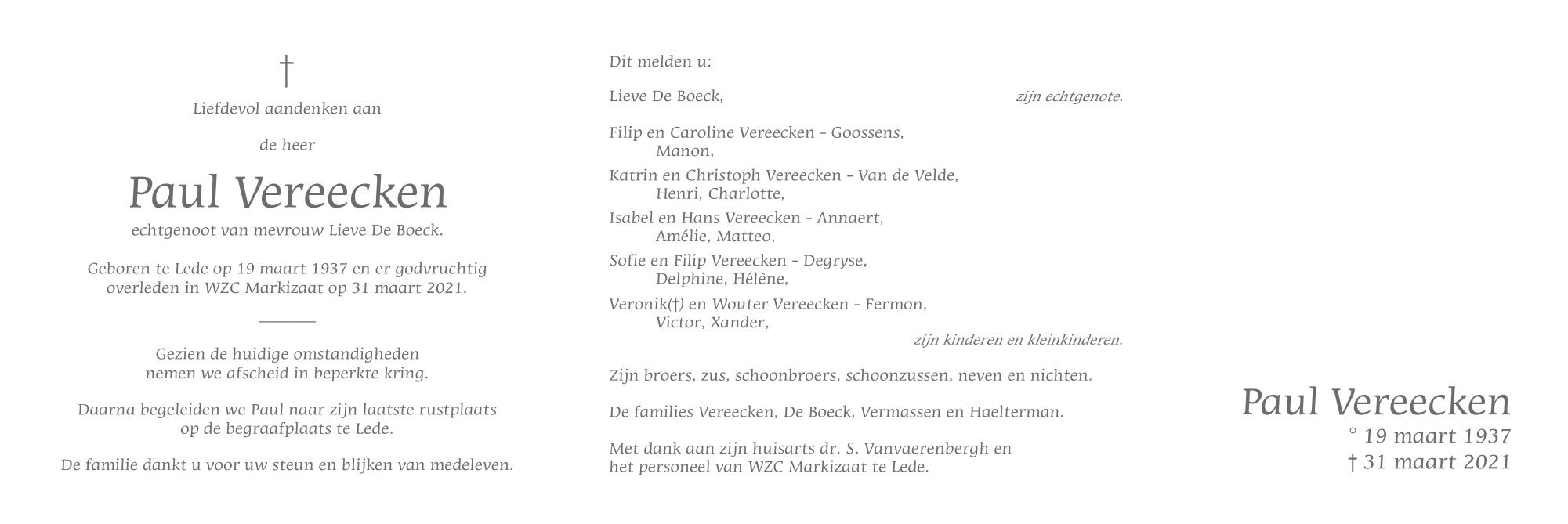 Overleden te Lede (9340) op woensdag 31 maart 2021 op 84-jarige leeftijd