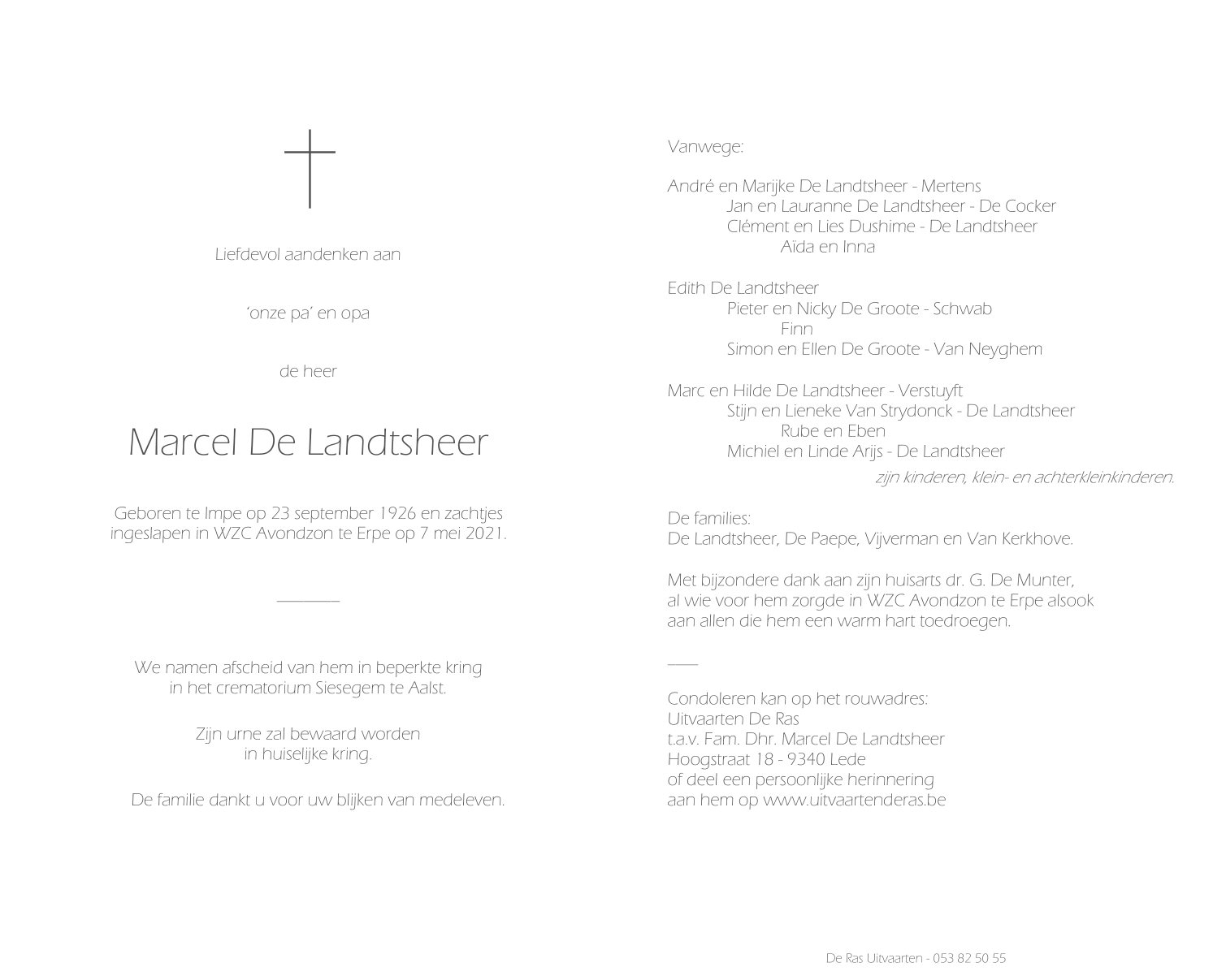 Overleden te Erpe (9420) op vrijdag 7 mei 2021 op 94-jarige leeftijd