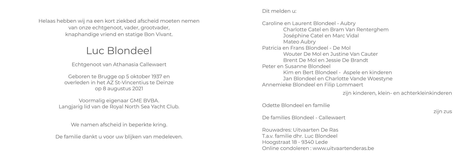 Overleden te Deinze (9800) op zondag 8 augustus 2021 op 83-jarige leeftijd