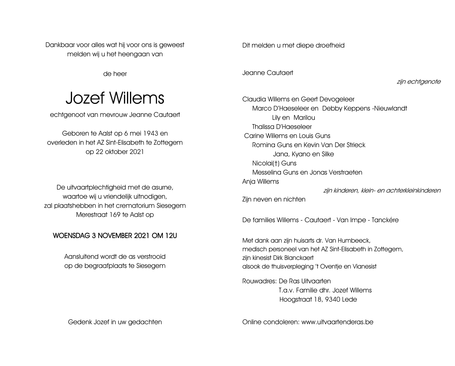 Echtgenoot van Mevrouw Jeanne Cautaert