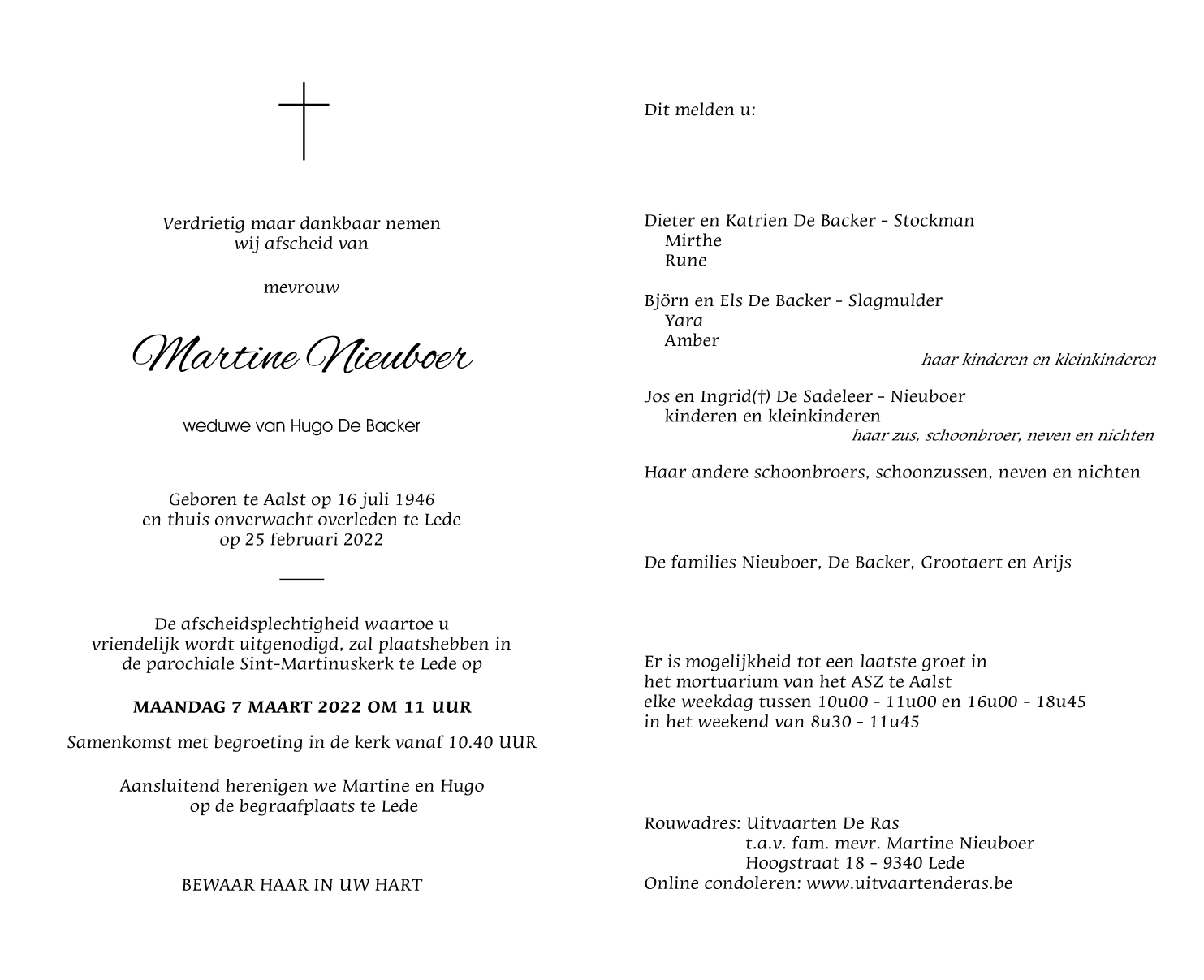 Overleden te Lede (9340) op vrijdag 25 februari 2022 op 75-jarige leeftijd