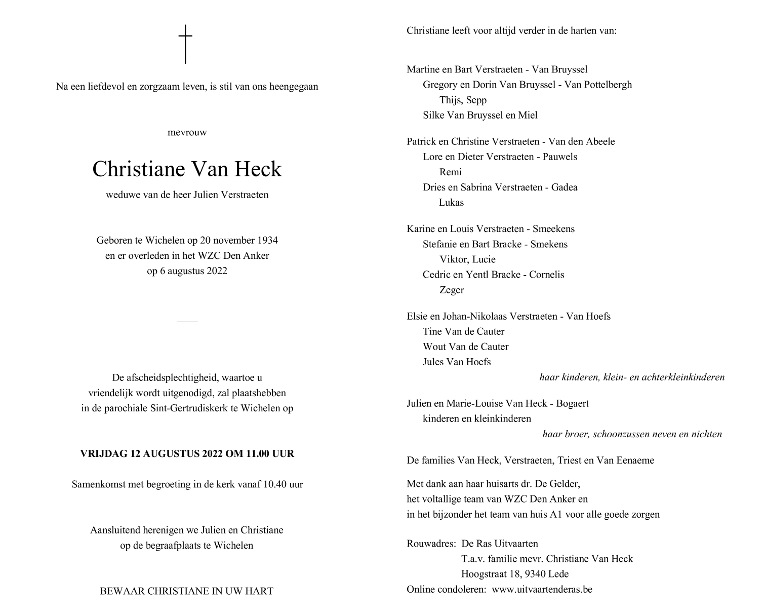 Overleden te Serskamp (9260) op zaterdag 6 augustus 2022 op 87-jarige leeftijd