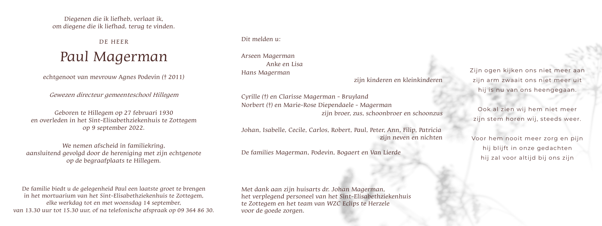 Overleden te Zottegem (9620) op vrijdag 9 september 2022 op 92-jarige leeftijd