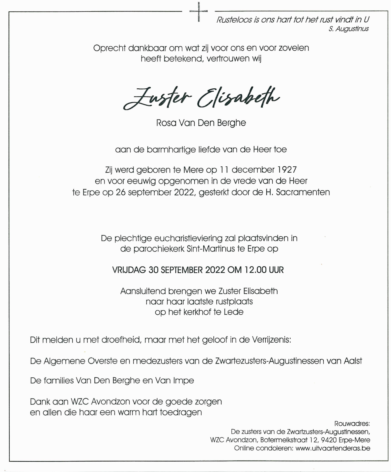 Overleden te Erpe (9420) op maandag 26 september 2022 op 94-jarige leeftijd