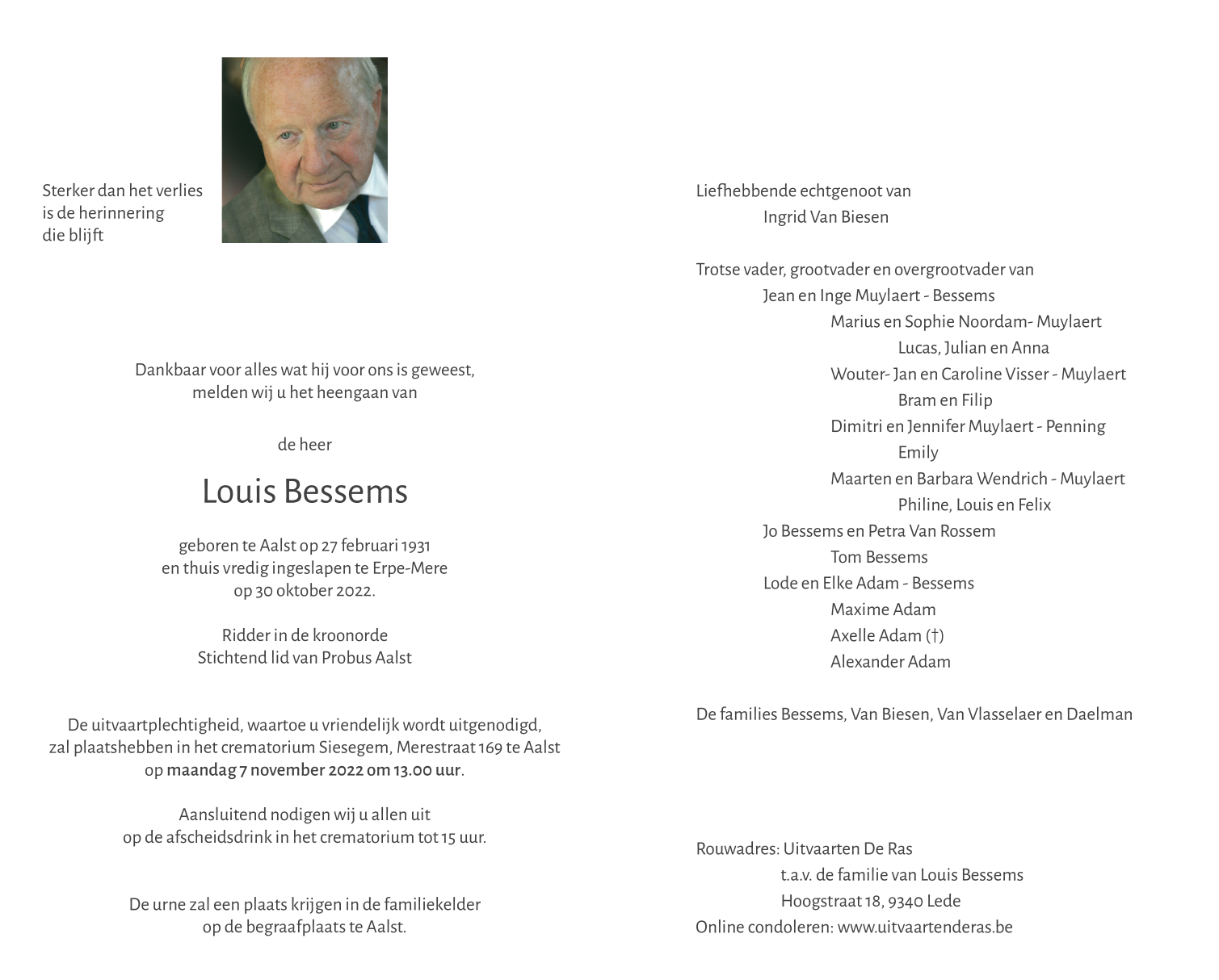 Overleden te Erpe (9420) op zondag 30 oktober 2022 op 91-jarige leeftijd