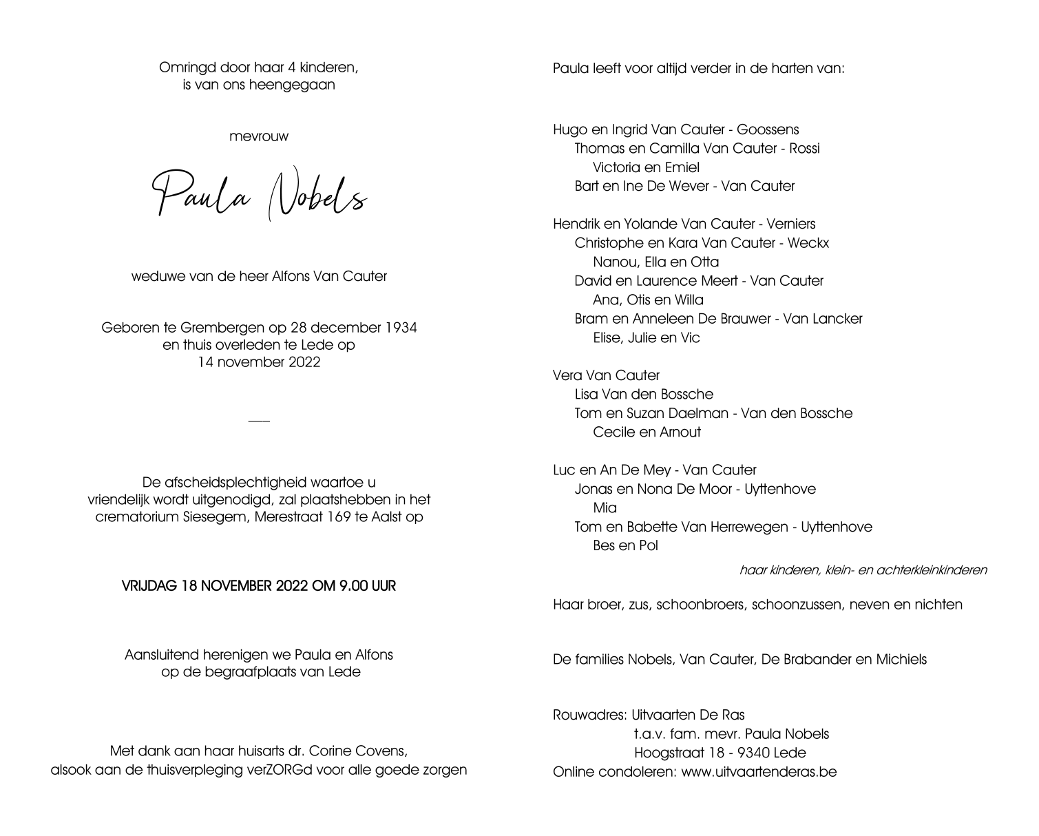Overleden te Lede (9340) op maandag 14 november 2022 op 87-jarige leeftijd