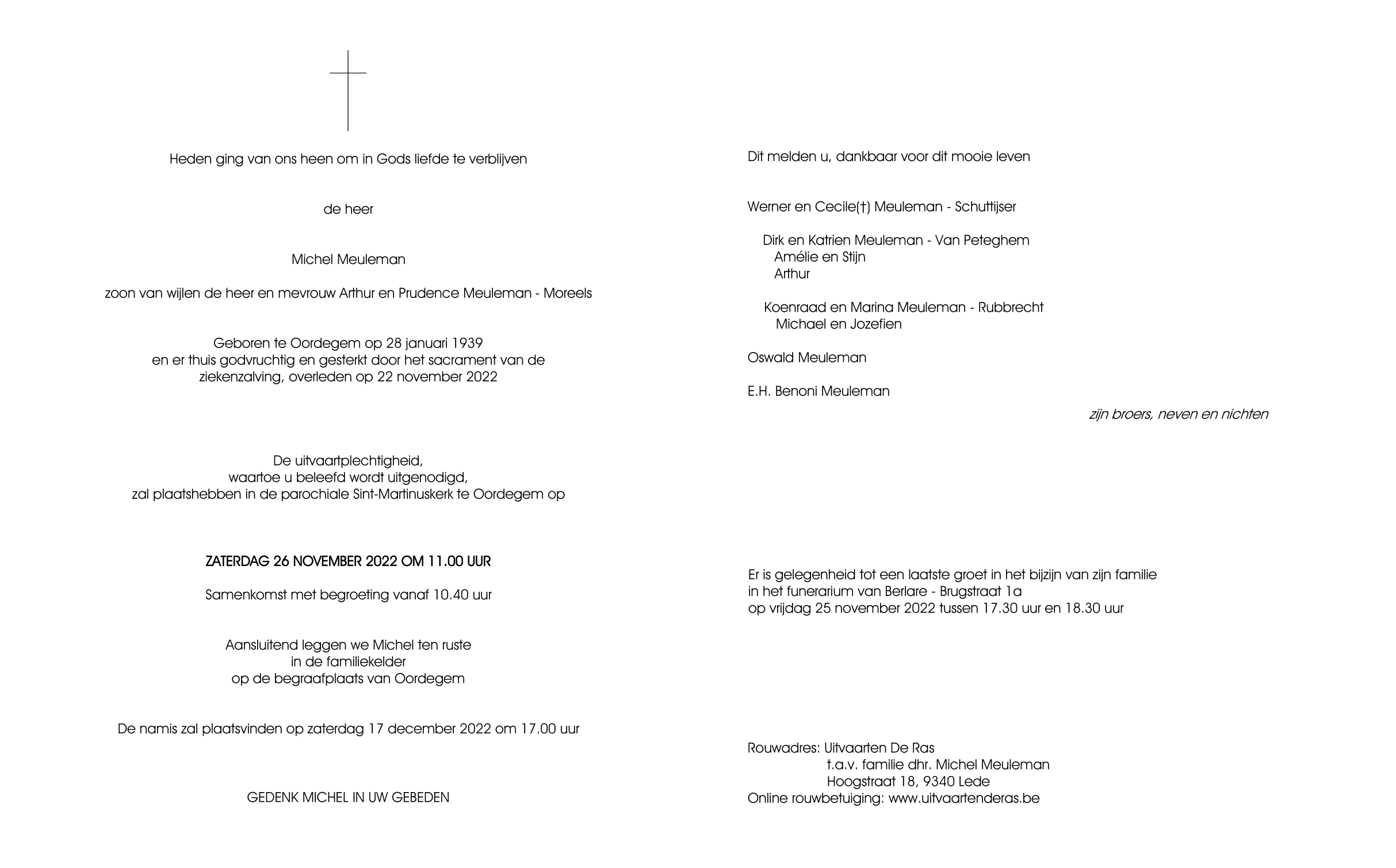 Overleden te Oordegem (9340) op dinsdag 22 november 2022 op 84-jarige leeftijd