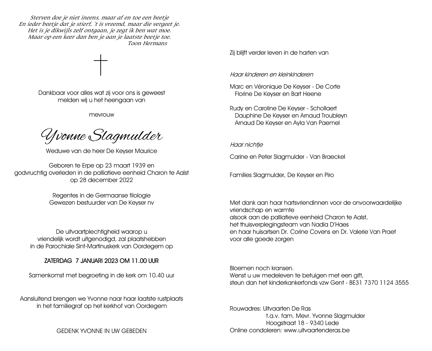 Overleden te Aalst (9300) op woensdag 28 december 2022 op 83-jarige leeftijd