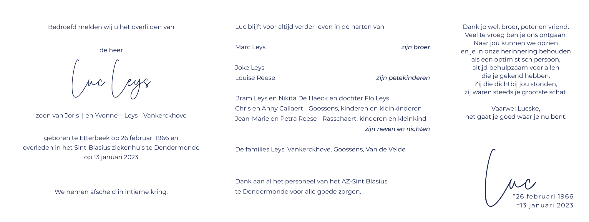 Overleden te Dendermonde (9200) op vrijdag 13 januari 2023 op 56-jarige leeftijd