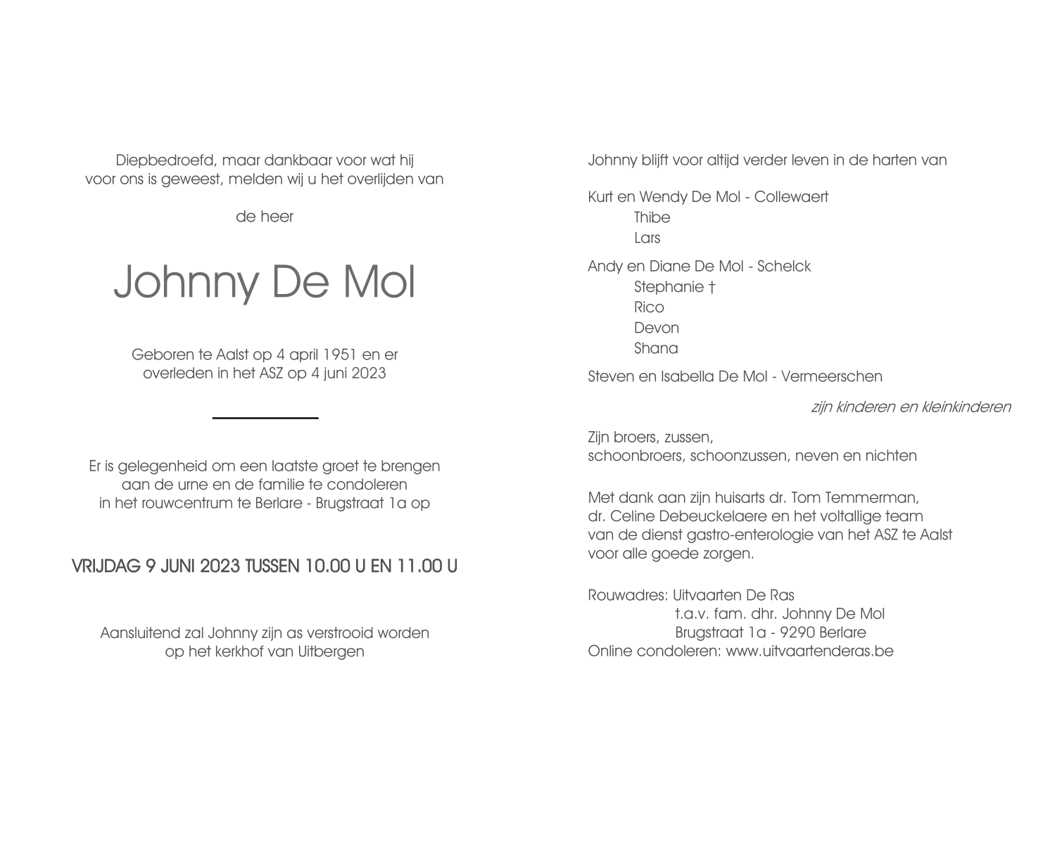 Overleden te Aalst (9300) op zondag 4 juni 2023 op 72-jarige leeftijd
