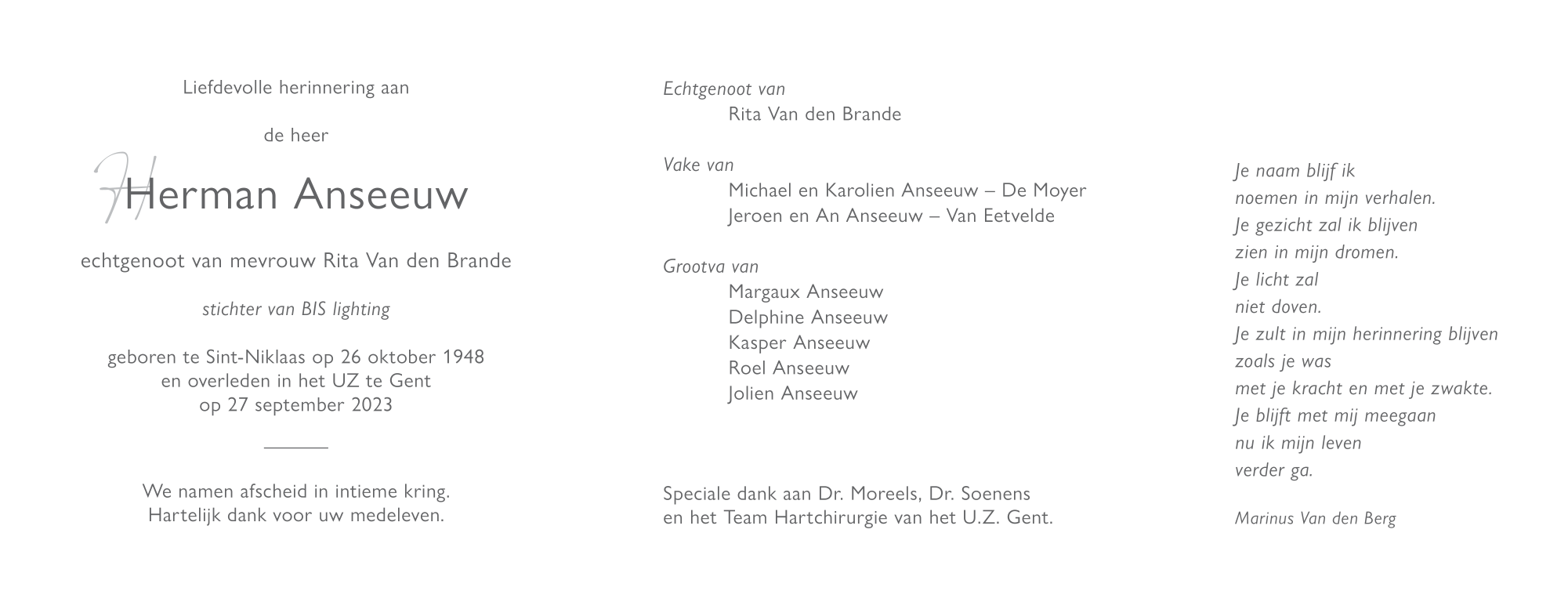 Overleden te Gent (9000) op woensdag 27 september 2023 op 74-jarige leeftijd