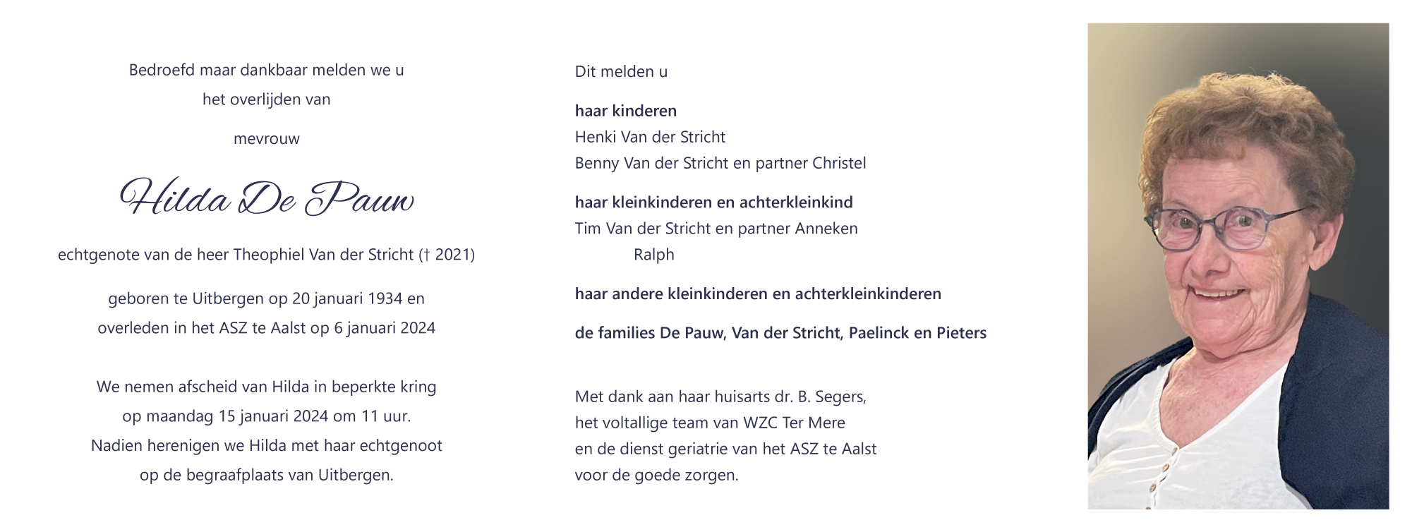 Overleden te Aalst (9300) op zaterdag 6 januari 2024 op 89-jarige leeftijd