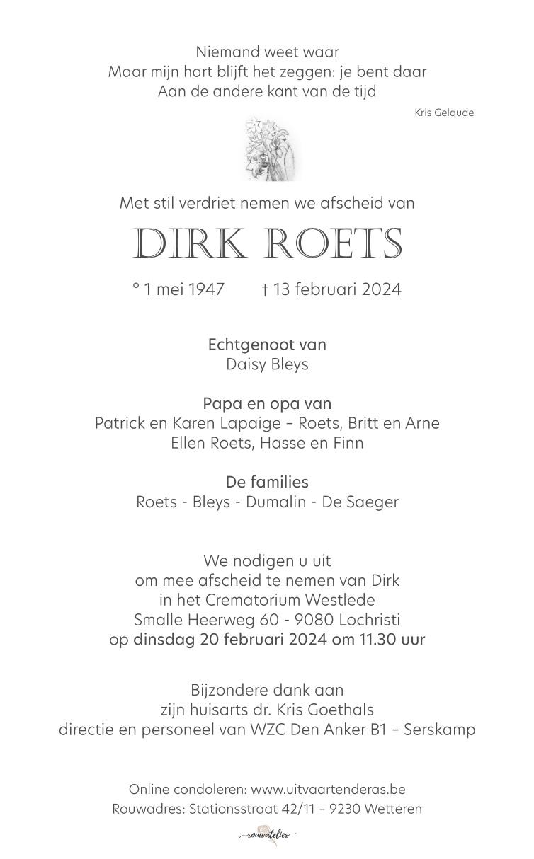Overleden te Wichelen (9260) op dinsdag 13 februari 2024 op 76-jarige leeftijd