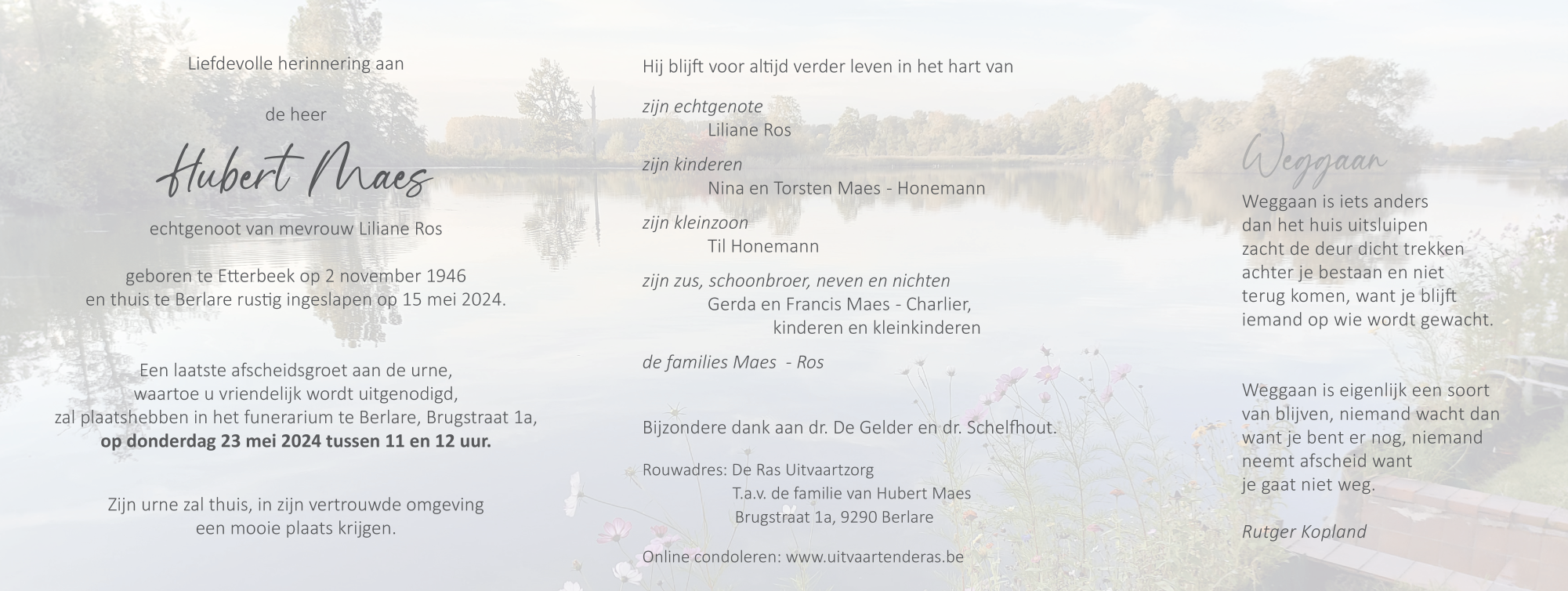 Overleden te Berlare (9290) op woensdag 15 mei 2024 op 77-jarige leeftijd