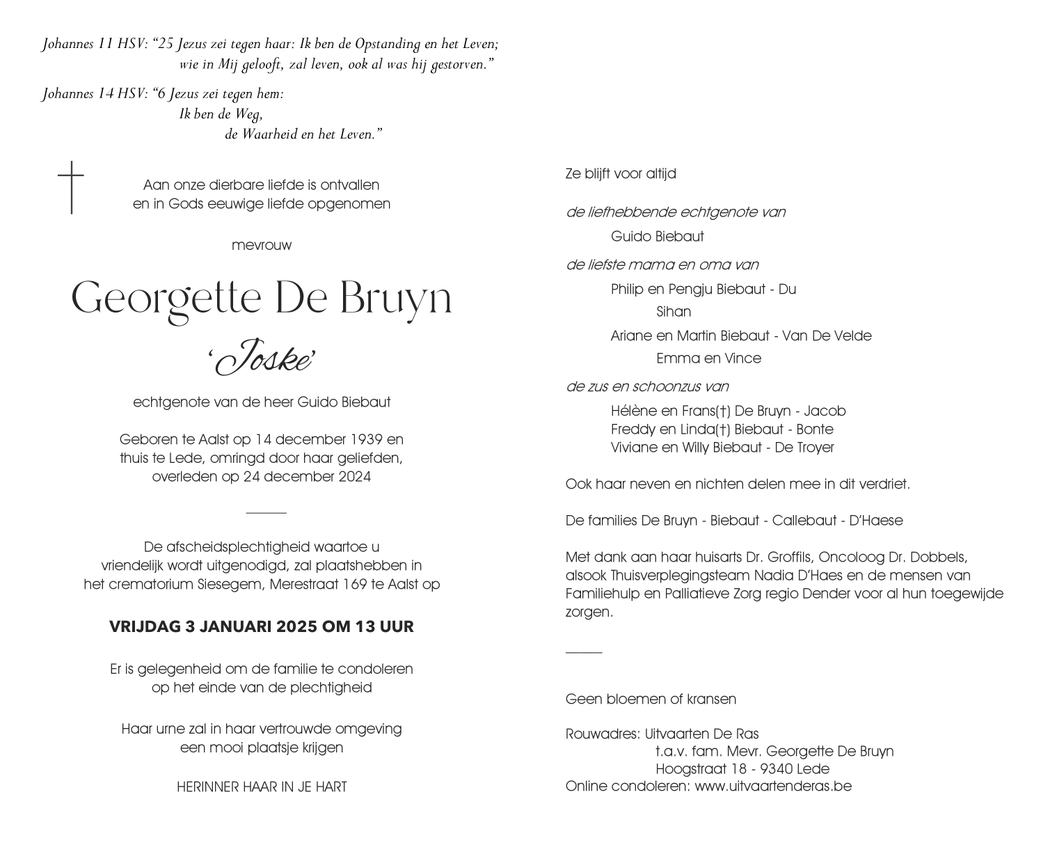 Overleden te Lede (9340) op dinsdag 24 december 2024 op 85-jarige leeftijd