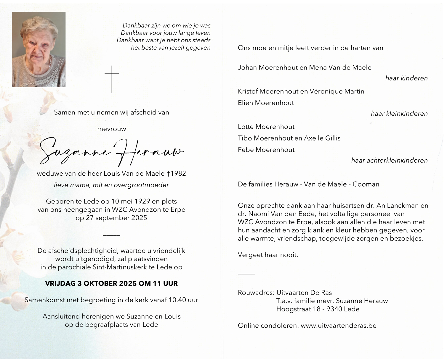 Overleden te Erpe (9420) op zaterdag 27 september 2025 op 96-jarige leeftijd