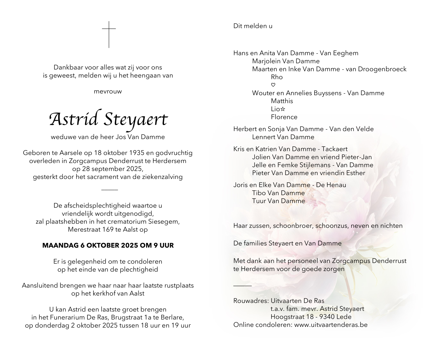 Overleden te Herdersem (9310) op zondag 28 september 2025 op 89-jarige leeftijd