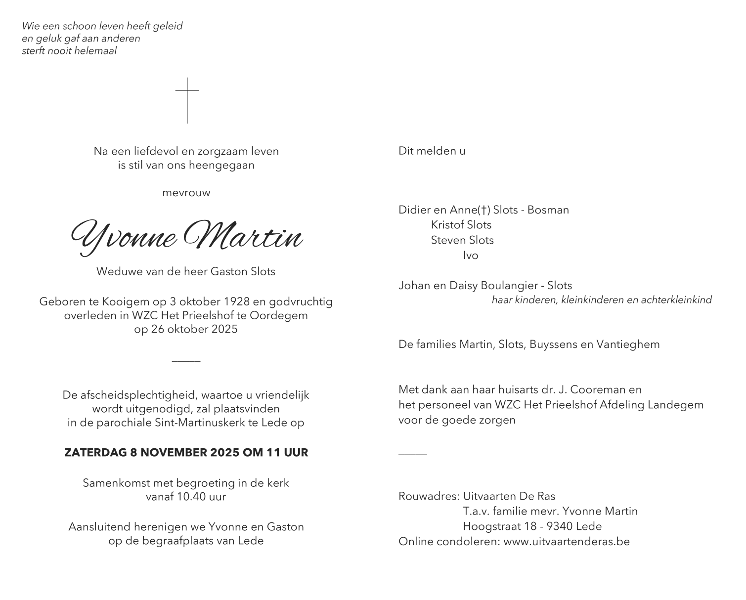 Overleden te Oordegem (9340) op zondag 26 oktober 2025 op 97-jarige leeftijd