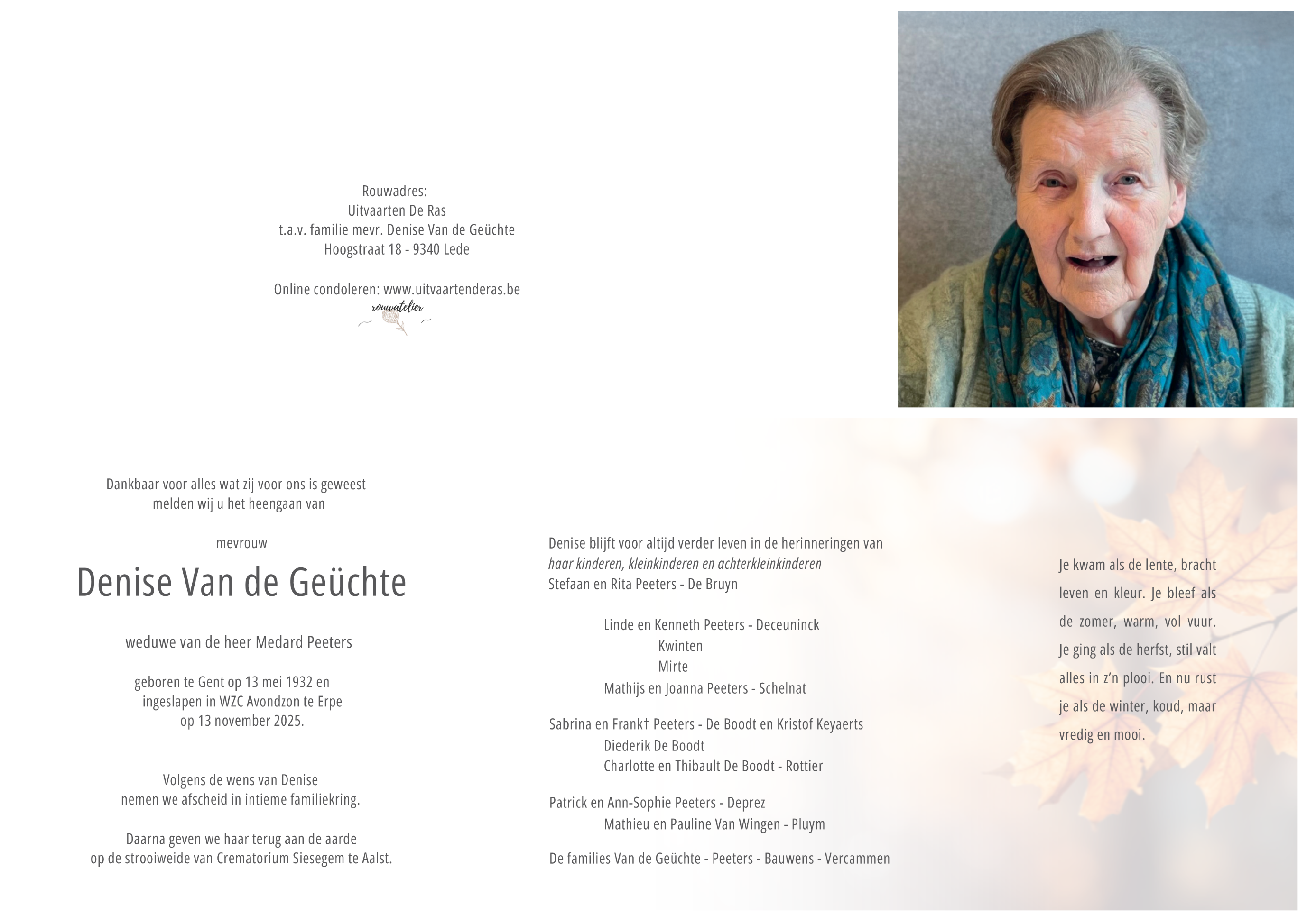 Overleden te Erpe (9420) op donderdag 13 november 2025 op 93-jarige leeftijd