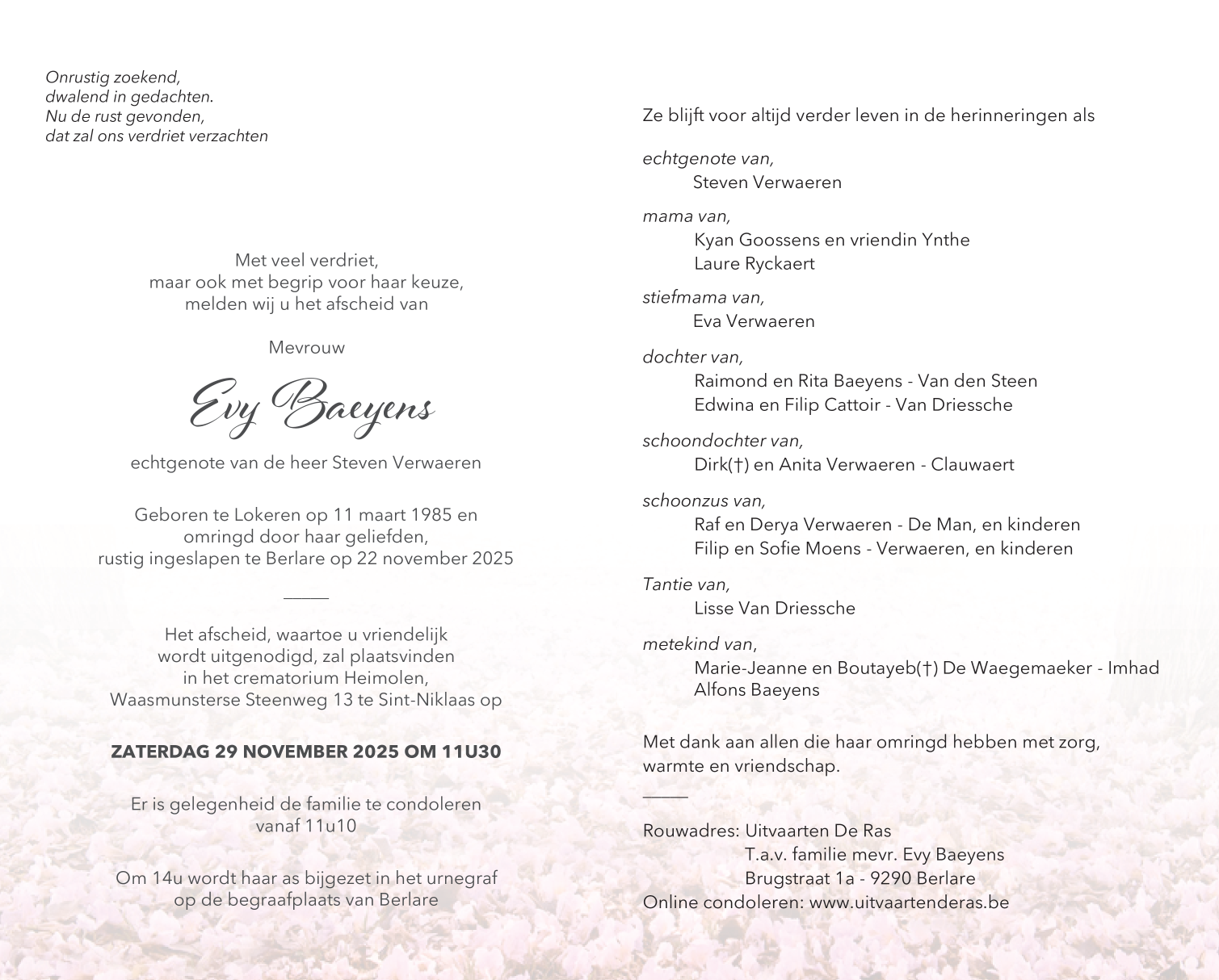 Overleden te Berlare (9290) op zaterdag 22 november 2025 op 40-jarige leeftijd