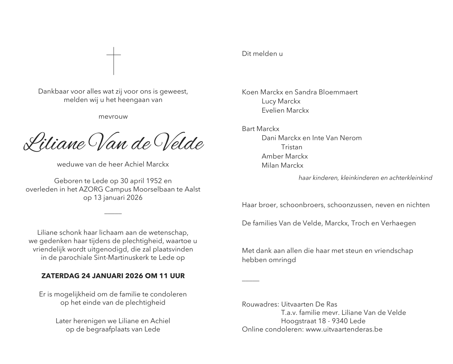 Overleden te Aalst (9300) op dinsdag 13 januari 2026 op 73-jarige leeftijd