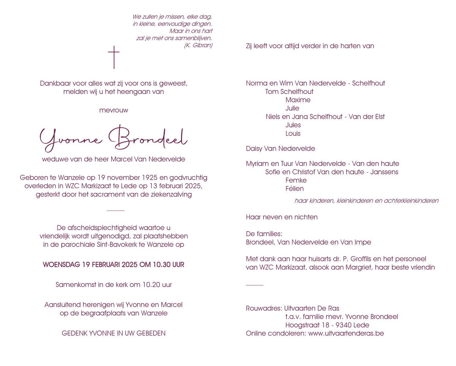 Overleden te Lede (9340) op donderdag 13 februari 2025 op 99-jarige leeftijd