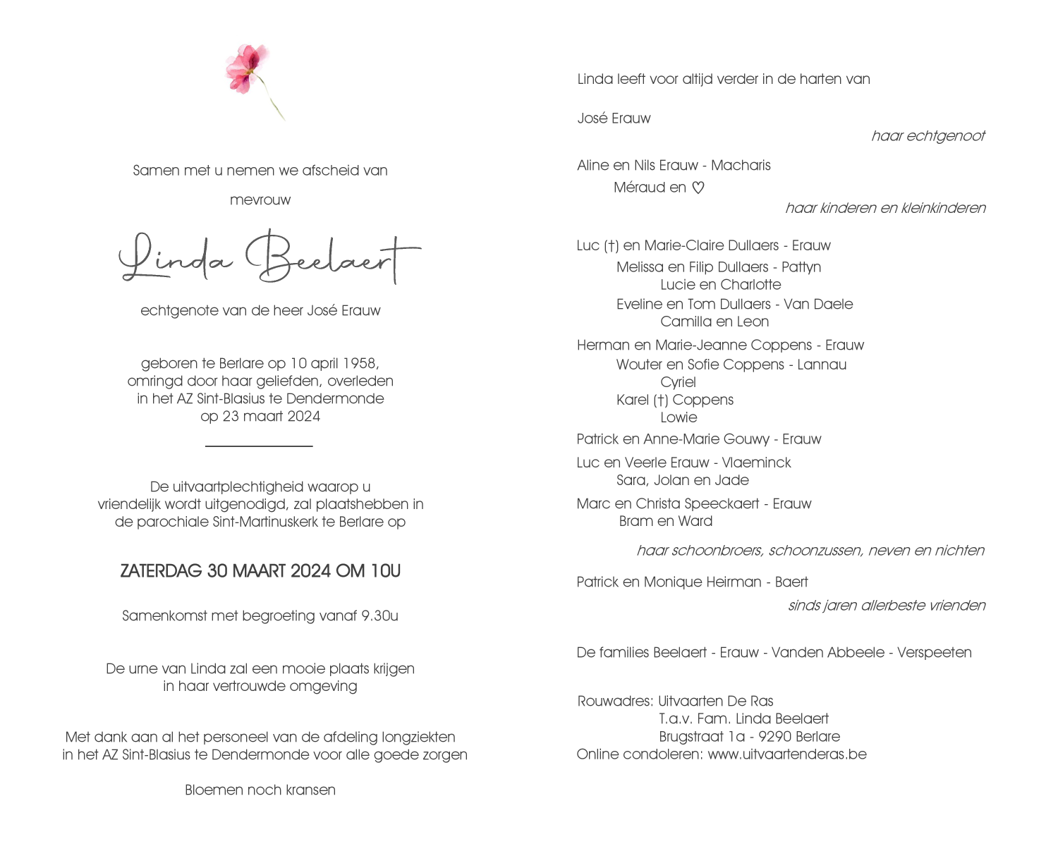 Overleden te Dendermonde (9200) op zaterdag 23 maart 2024 op 65-jarige leeftijd
