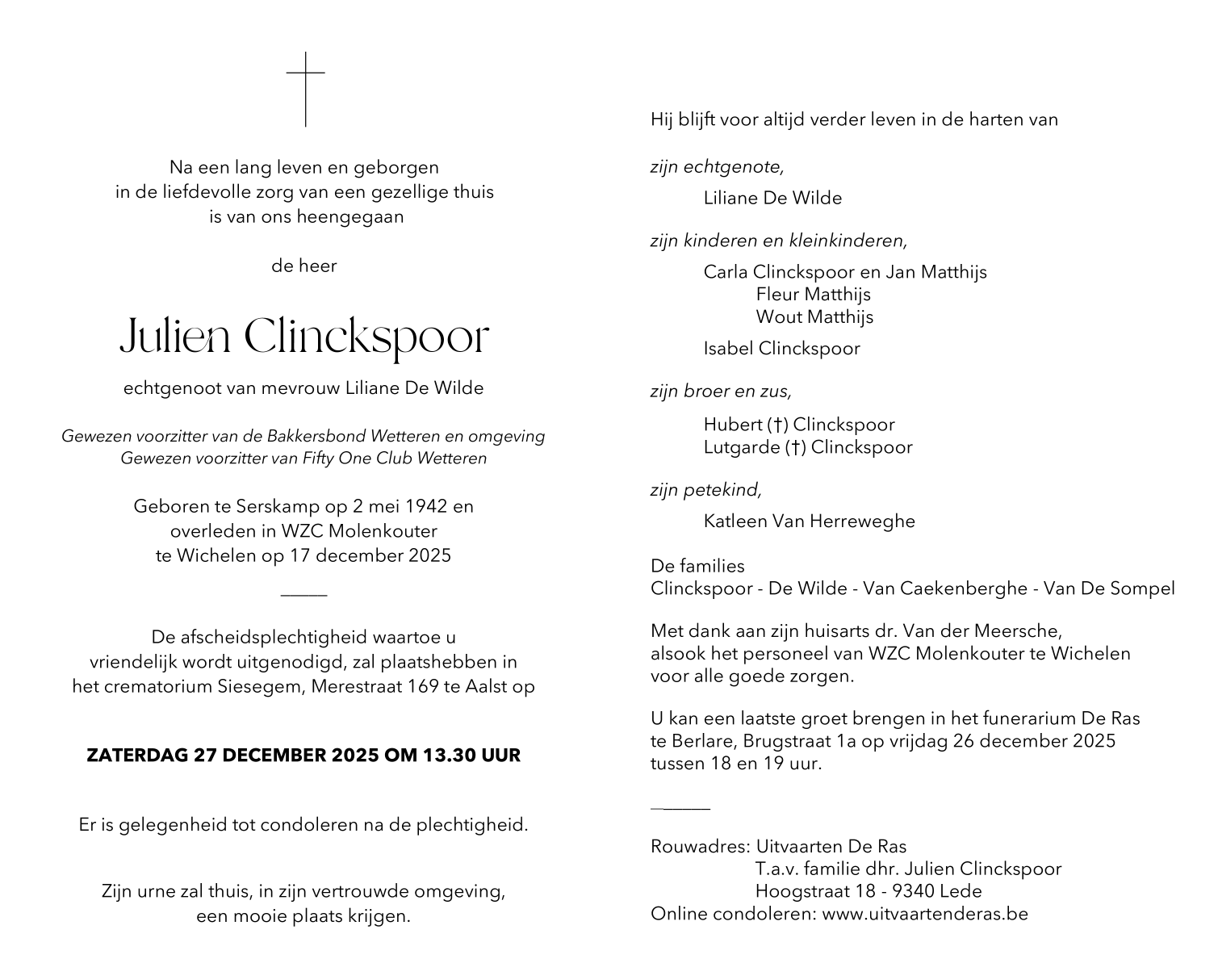 Overleden te Wichelen (9260) op woensdag 17 december 2025 op 83-jarige leeftijd