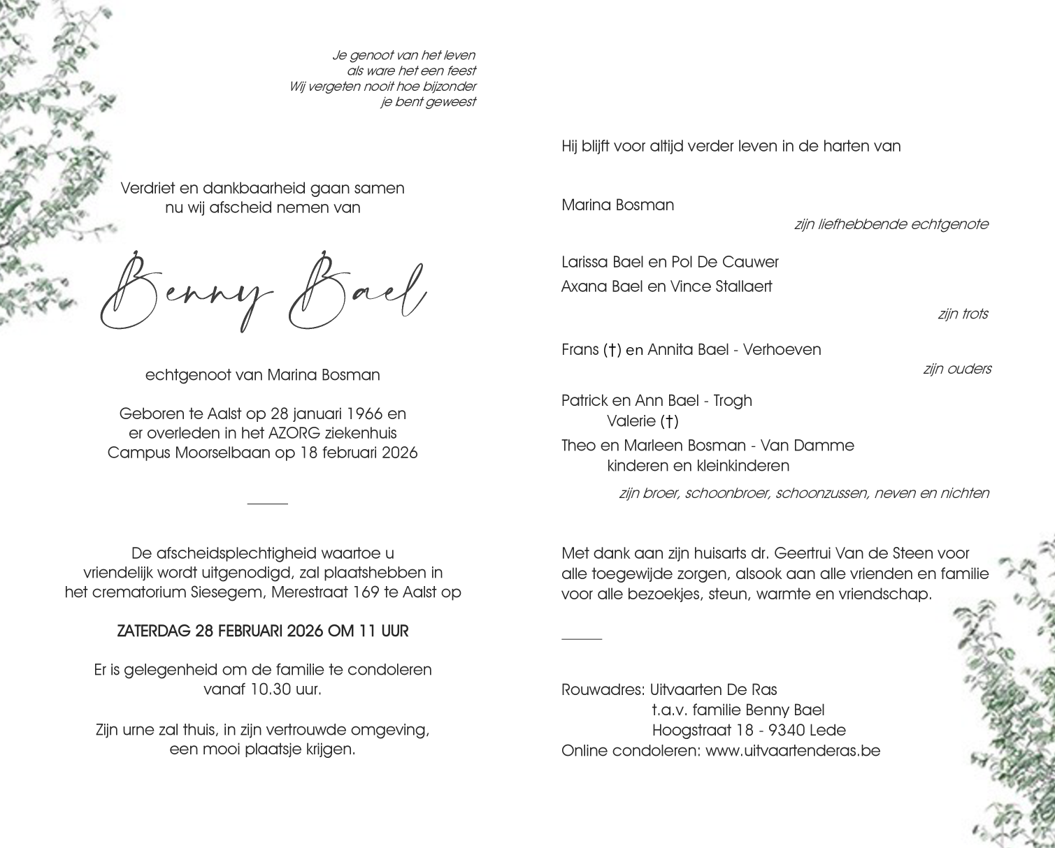 Overleden te Aalst (9300) op woensdag 18 februari 2026 op 60-jarige leeftijd