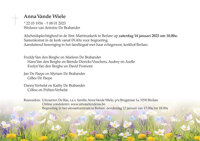 Overleden te Dendermonde (9200) op zondag 8 januari 2023 op 88-jarige leeftijd