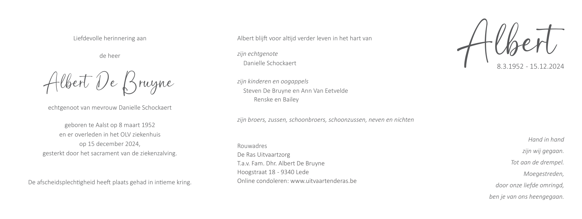 Overleden te Aalst (9300) op zondag 15 december 2024 op 72-jarige leeftijd