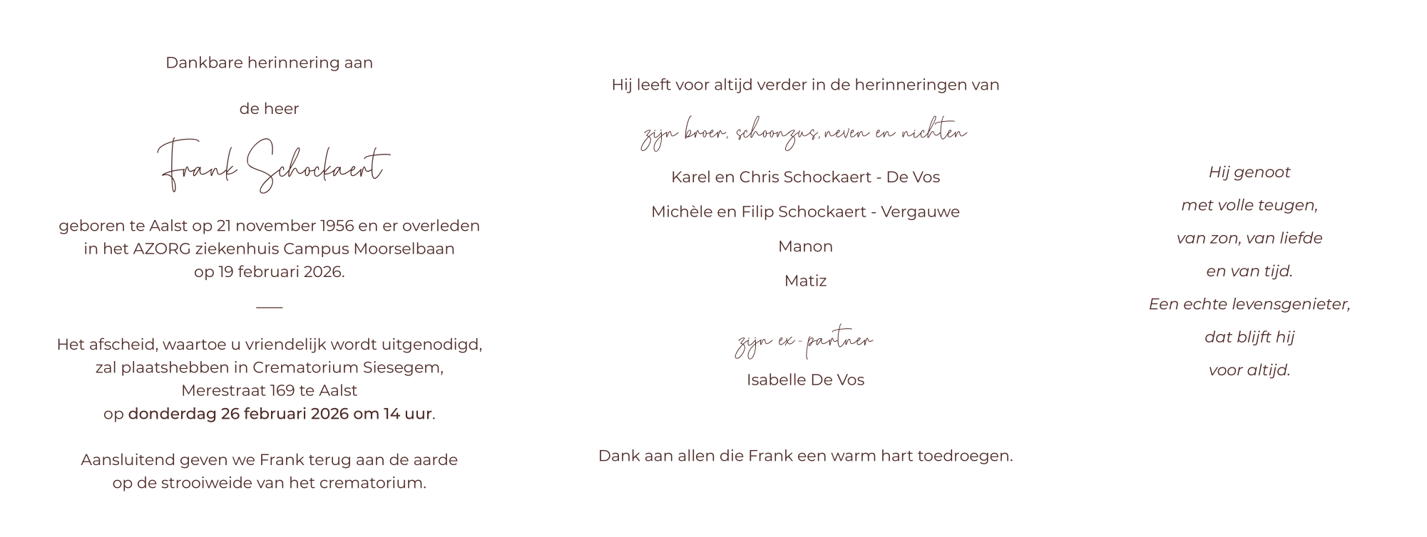 Overleden te Aalst (9300) op donderdag 19 februari 2026 op 69-jarige leeftijd