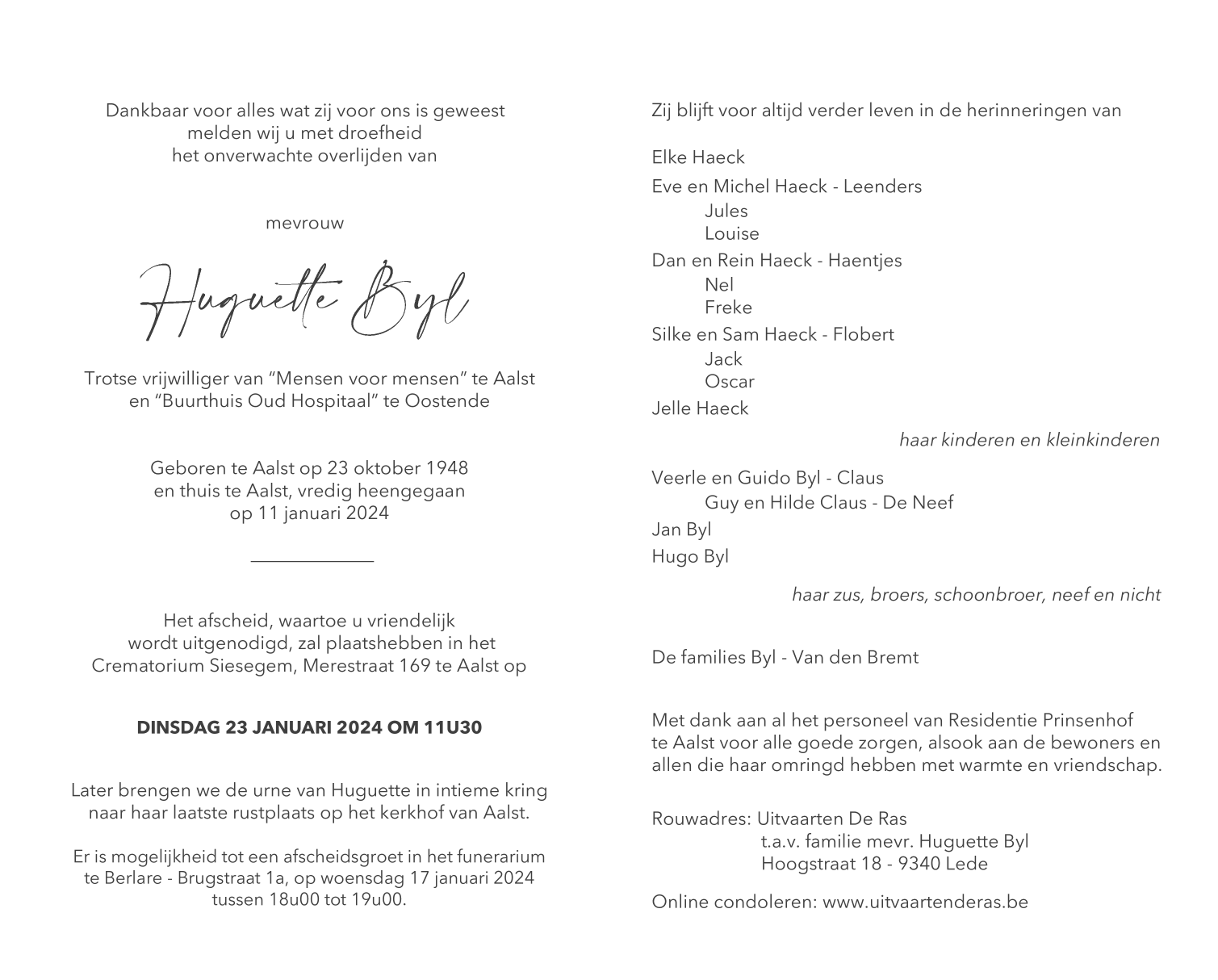 Overleden te Aalst (9300) op donderdag 11 januari 2024 op 75-jarige leeftijd