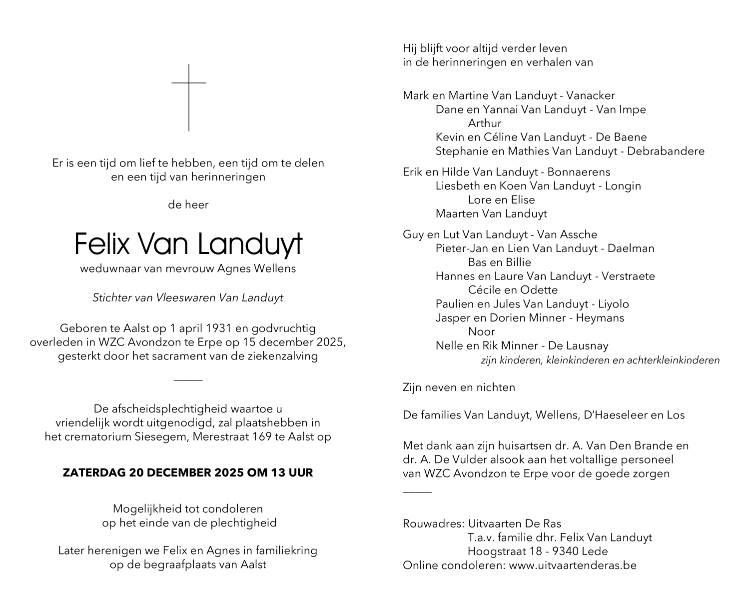 Overleden te Erpe (9420) op maandag 15 december 2025 op 94-jarige leeftijd
