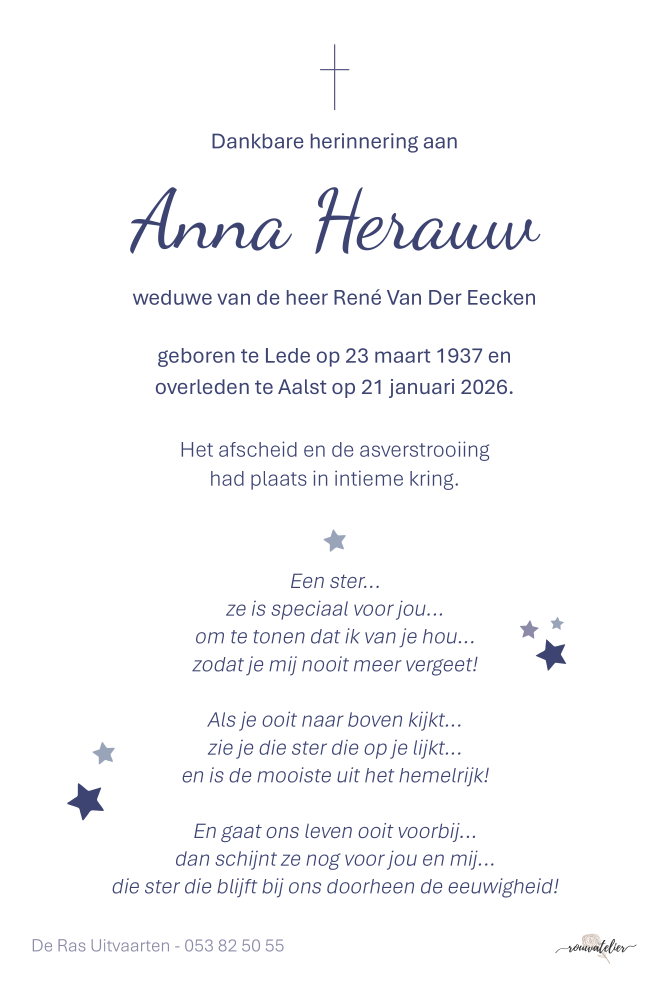 Overleden te Aalst (9300) op woensdag 21 januari 2026 op 88-jarige leeftijd