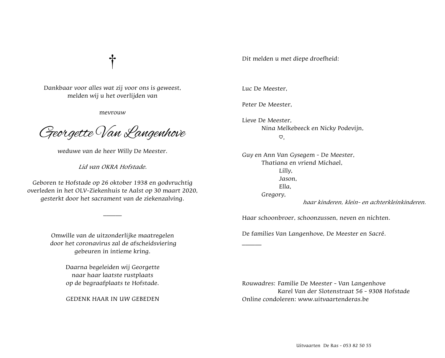 Overleden te Aalst (9300) op maandag 30 maart 2020 op 81-jarige leeftijd