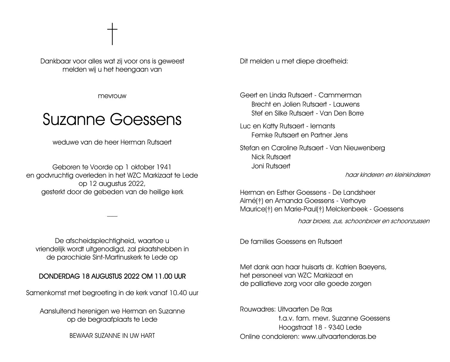Overleden te Lede (9340) op vrijdag 12 augustus 2022 op 80-jarige leeftijd