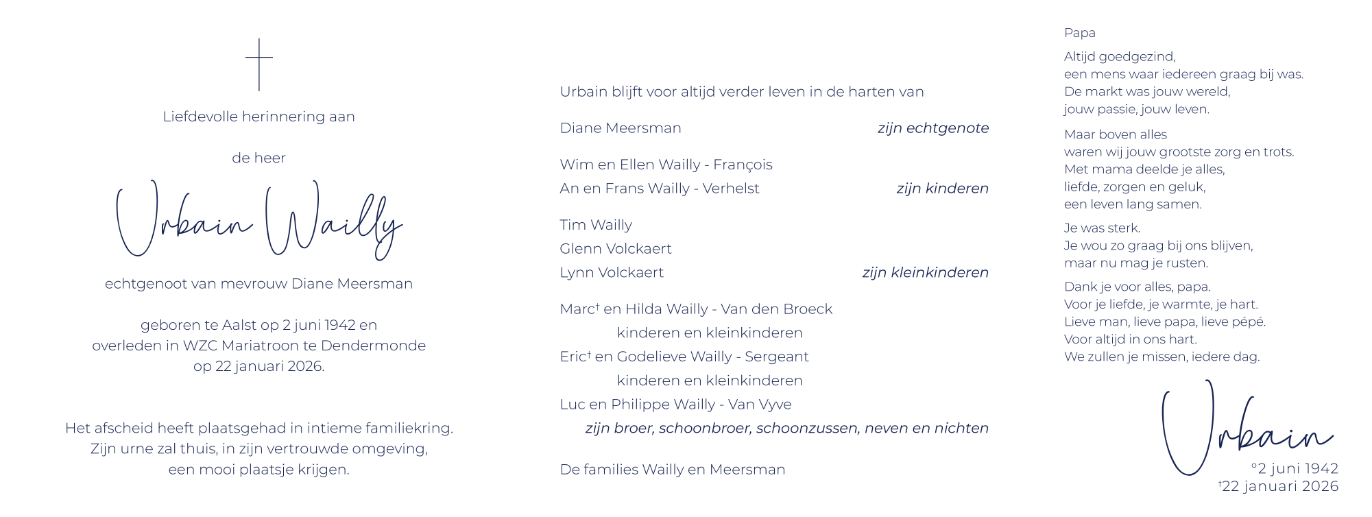 Overleden te Dendermonde (9200) op donderdag 22 januari 2026 op 83-jarige leeftijd